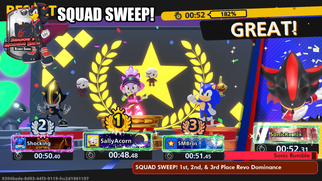 🧹 Party Rumble Sweep: The stream concluded with a display of absolute dominance. In a 5-vs-3 matchup against outsiders, the Revolution swept the podium with Sally (1st), Inky (2nd), and SMBros (3rd) claiming the top spots.